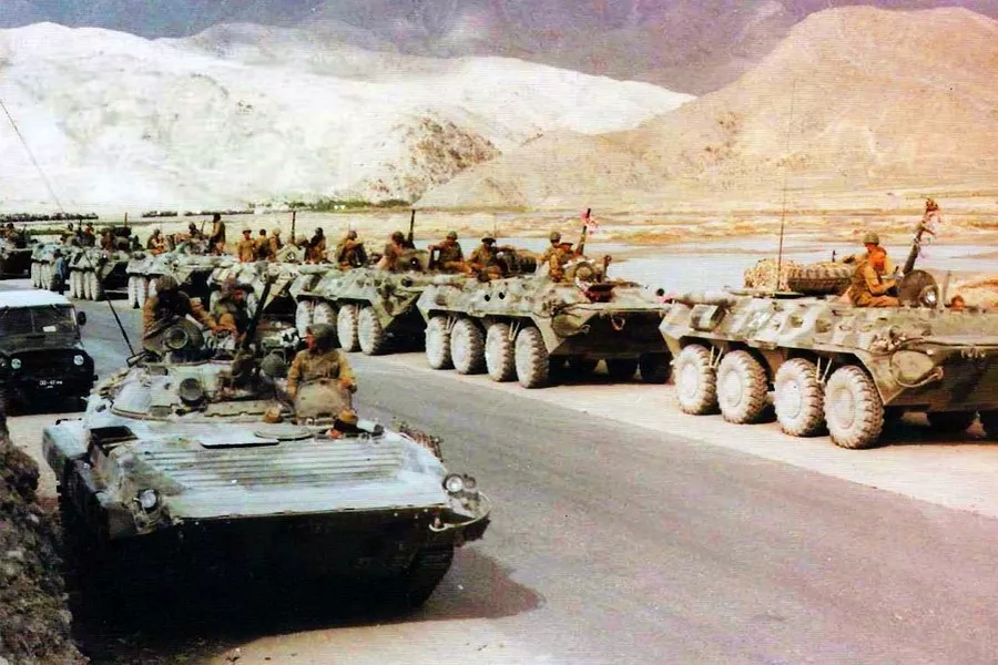 Soviet troops entering Afghanistan during the 1979 invasion